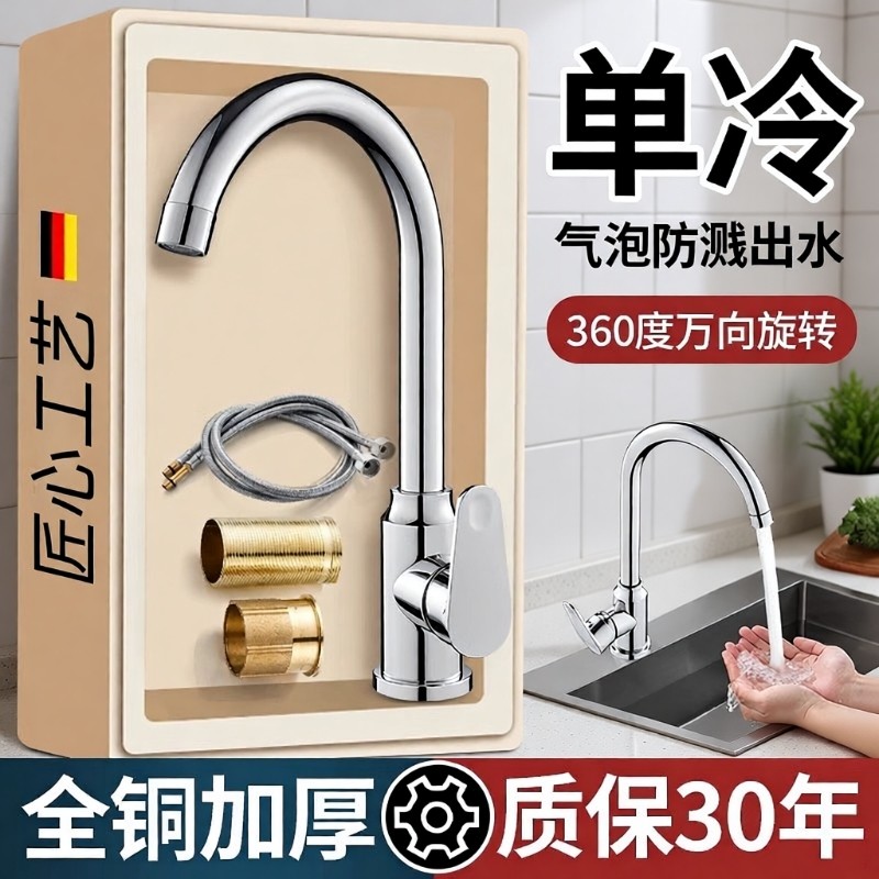 推荐理由:单冷款厨房洗菜盆水龙头全铜洗碗池水槽专用洗手池防溅水冷热单孔
