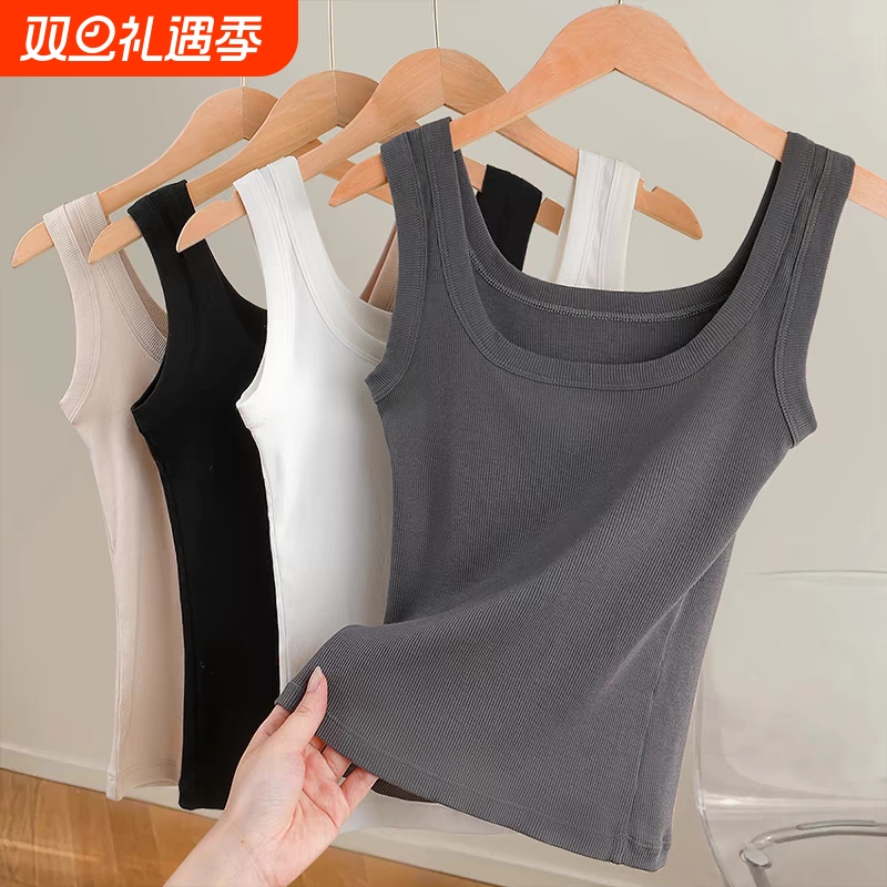 夏季莫代尔带胸垫吊带背心女装圆领内搭打底纯色无袖大码薄款上衣