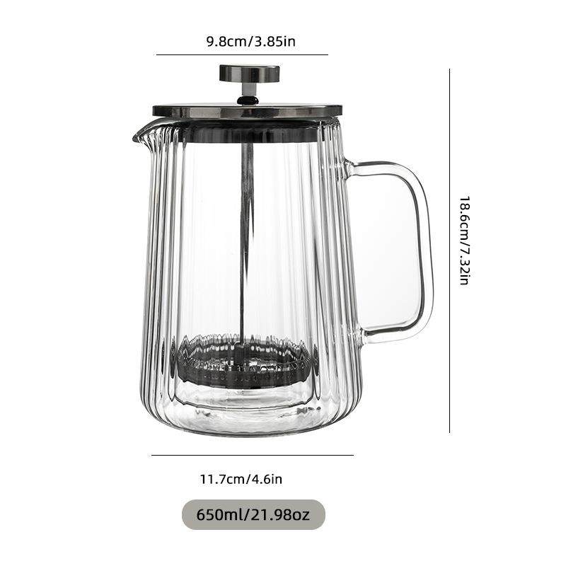 推荐理由:玻璃法压壶双层高硼硅玻璃竖纹滤压壶家用冲茶器打奶泡手冲咖啡壶