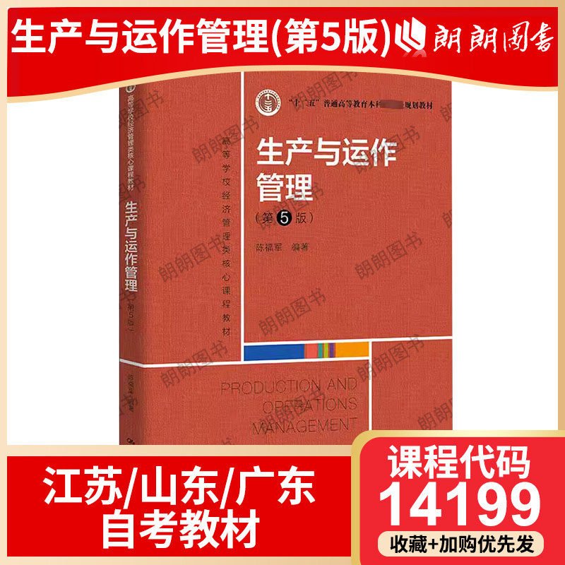 推荐理由:【26年1月4月自考】江苏广东山东省自考教材14199生产运作与管理(第5版) 陈福军2022年中国人民大学出版社考试大纲指定 朗朗图书