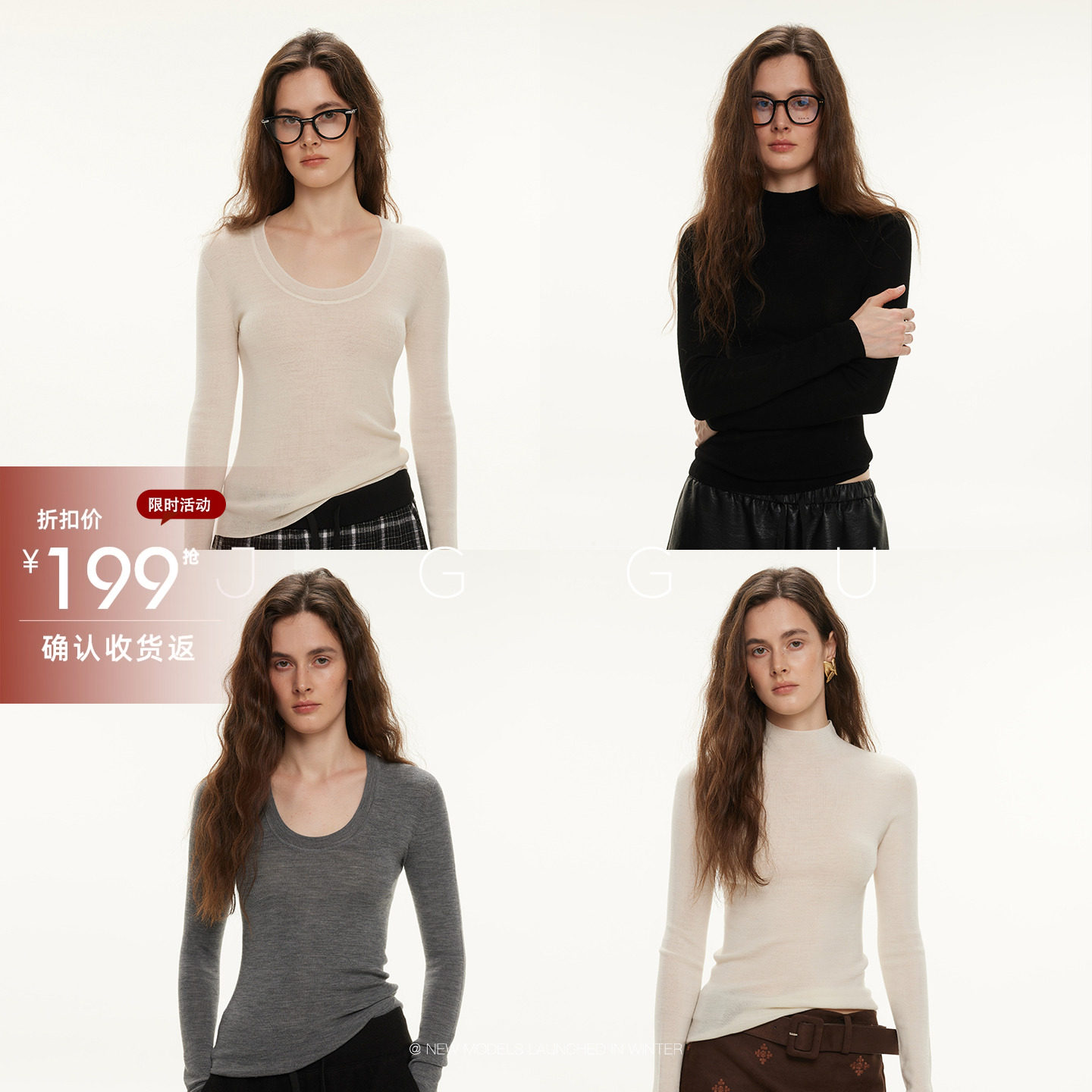 晶咕黑标JGGU【封神打底】全羊毛无缝一体半高领鹅蛋领针织打底衫