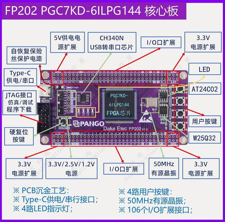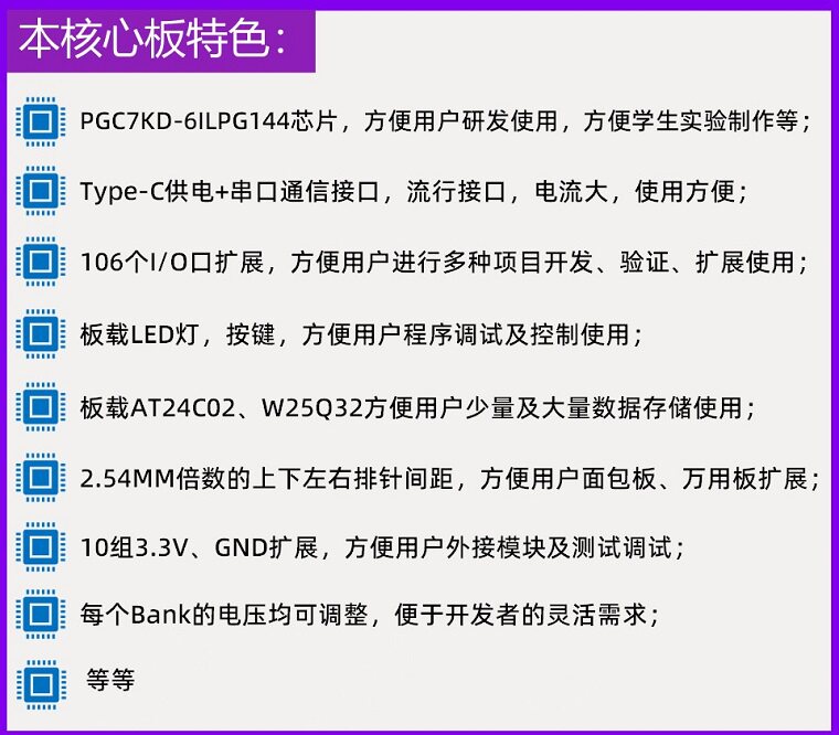 推荐理由:[国产]紫光同创PGC4KD/PGC7KD-6ILPG144 FPGA/CPLD开发板/核心板