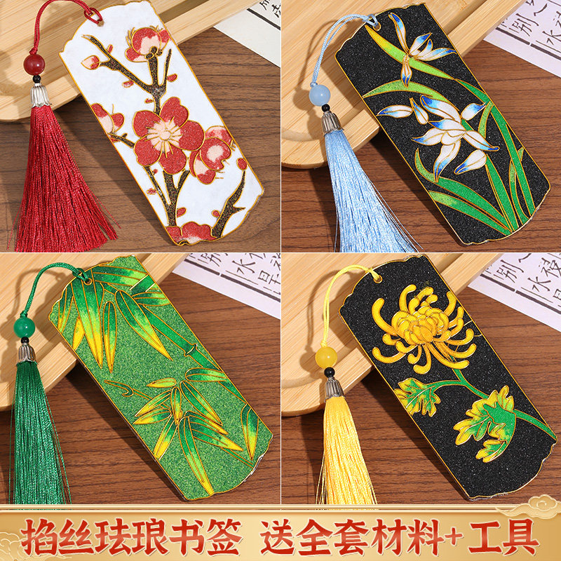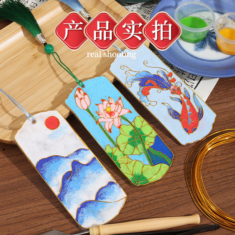 非遗传统制作景泰蓝掐丝珐琅画国风书签diy手工材料元旦挂件挂饰