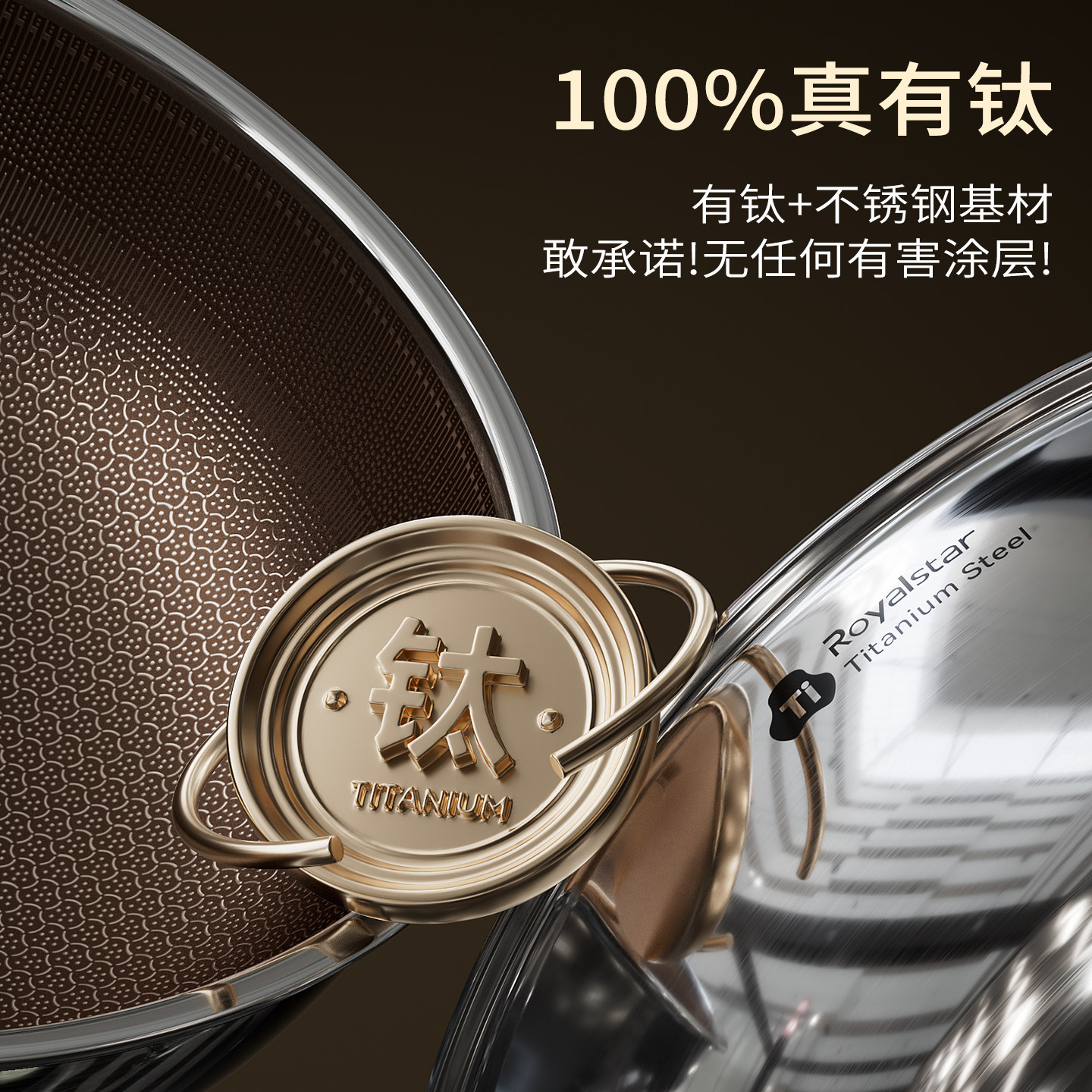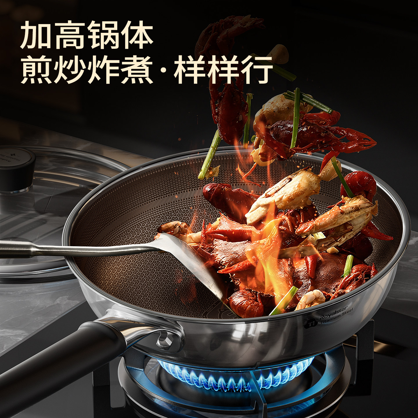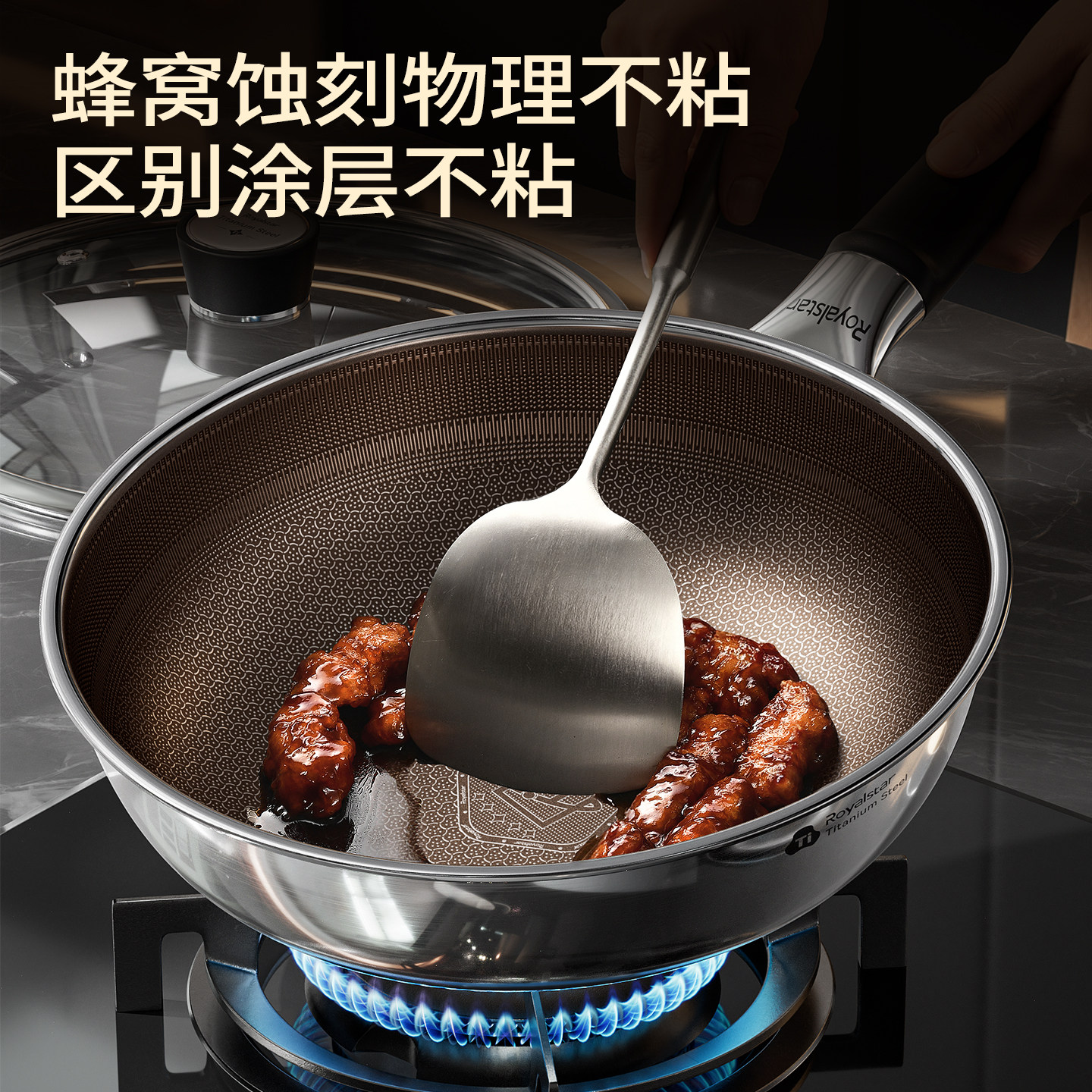 荣事达真钛无氟涂层不粘锅家用电磁炉燃气灶通用蜂窝不锈钢炒菜锅