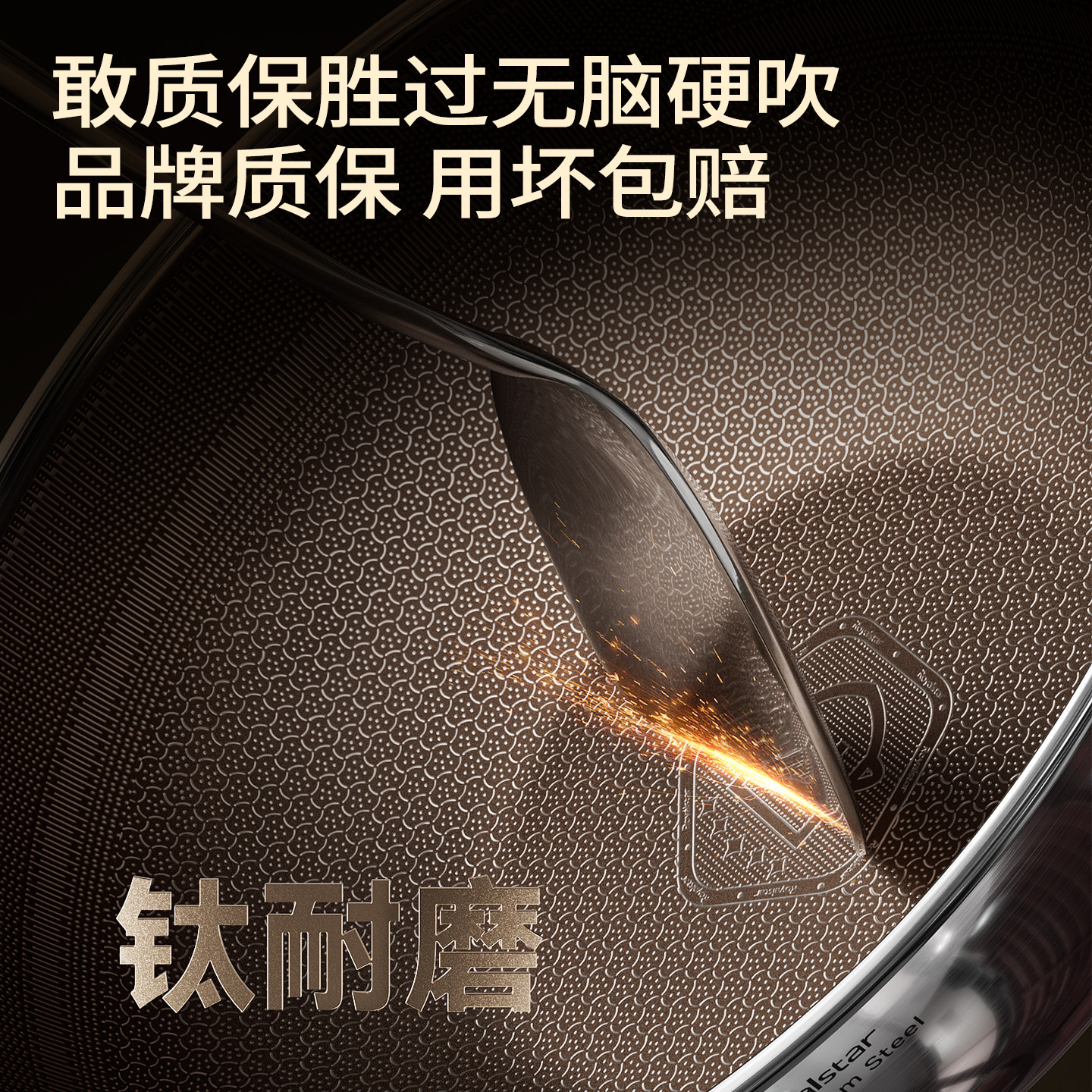推荐理由:荣事达真钛无氟涂层不粘锅家用电磁炉燃气灶通用蜂窝不锈钢炒菜锅