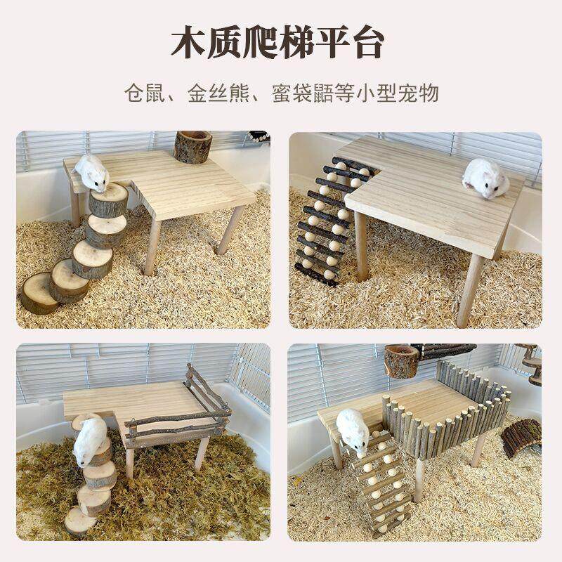 仓鼠玩具金丝熊木质爬梯二层平台仓鼠造景树枝围栏站台磨牙攀爬