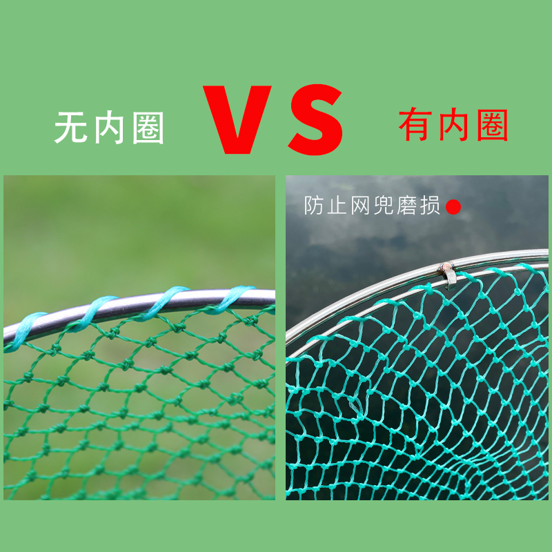 抄网头实心不锈钢网圈捞鱼网兜加深大物鱼网高级捞虾网子渔具全套