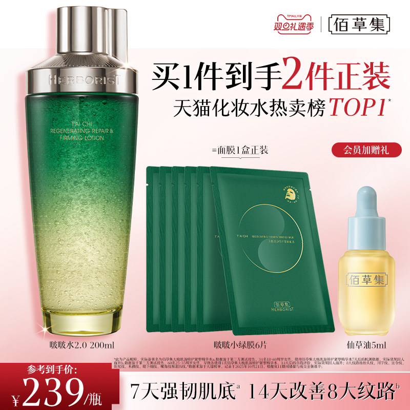 推荐理由:【第2代】佰草集太极啵啵水抗皱紧致补水保湿爽肤水精华水官方