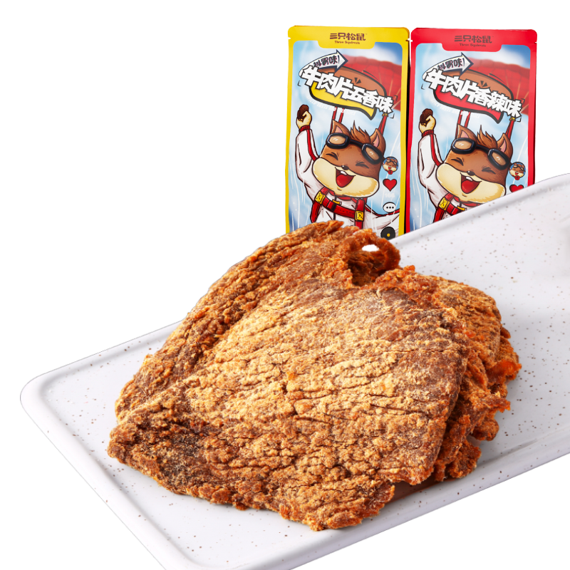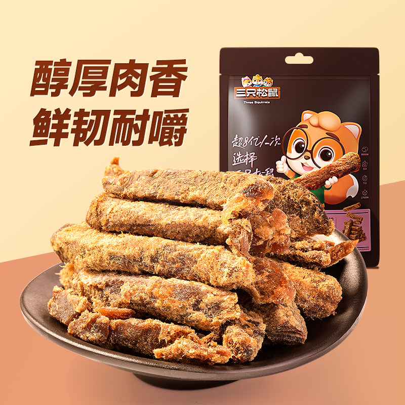 三只松鼠_牛肉片/牛肉条休闲零食小吃牛肉粒内蒙古手撕非风干牛肉