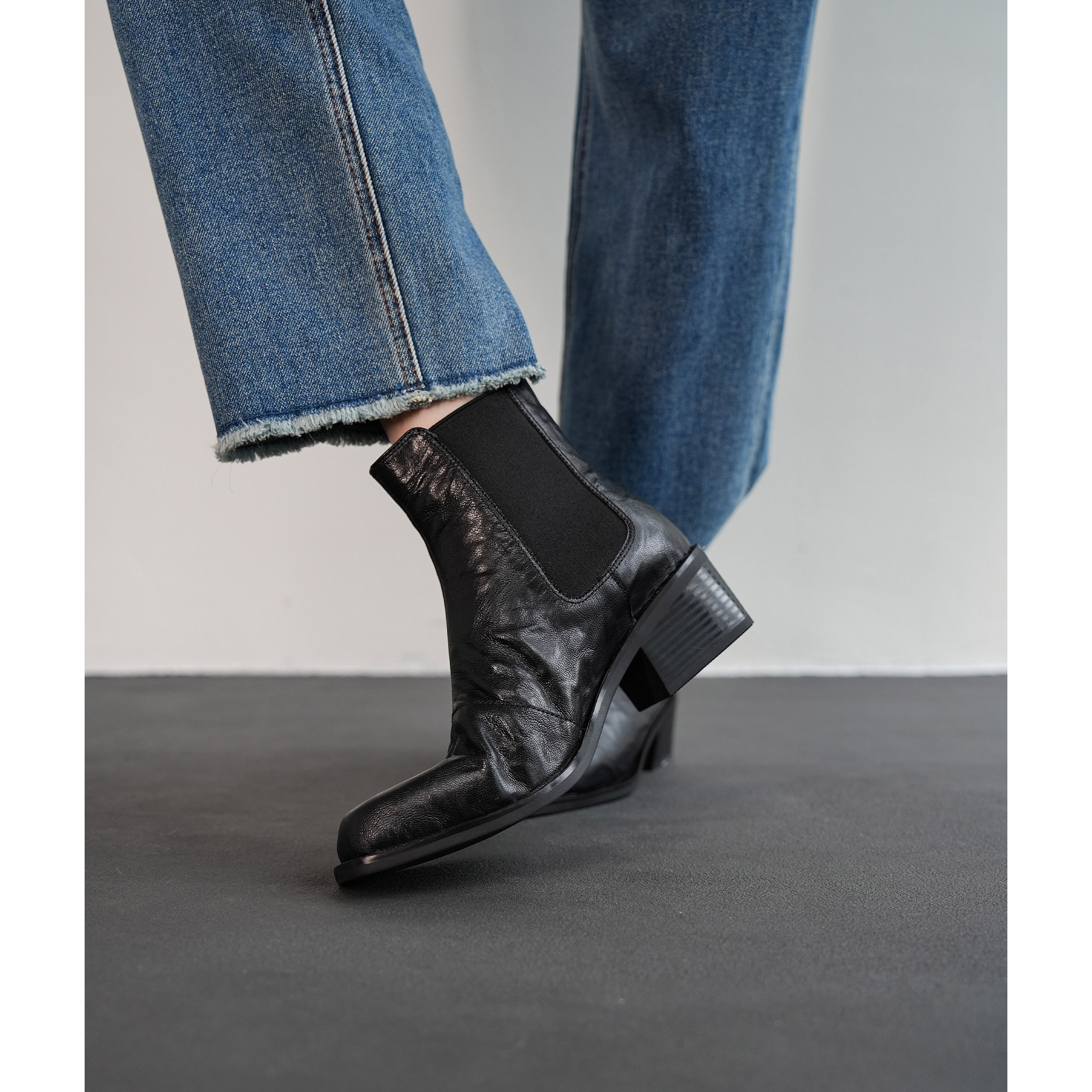 Fermina 静音跟短靴女中跟软面通勤风女靴百搭体制内切尔西靴