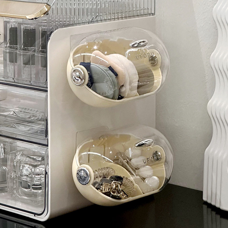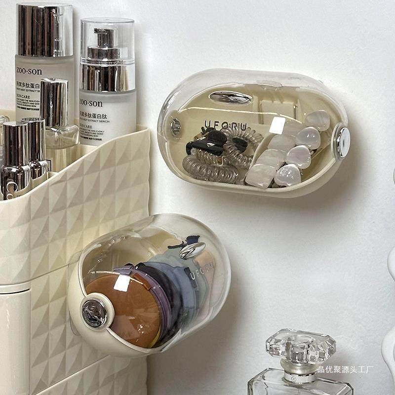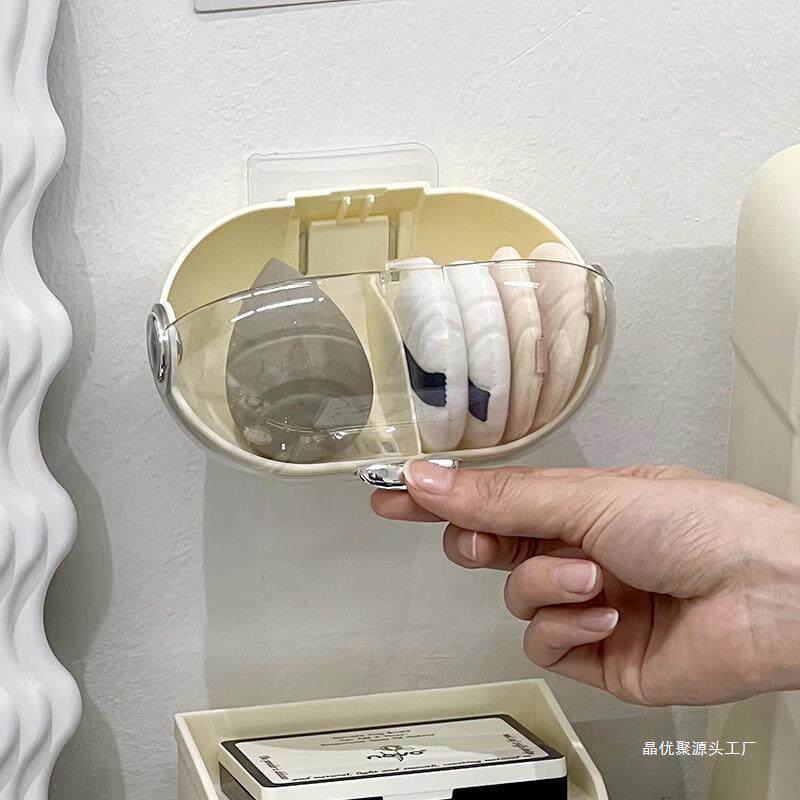 粉扑收纳盒带盖防尘旋转美妆蛋透气收纳架壁挂气垫首饰沥水置物架