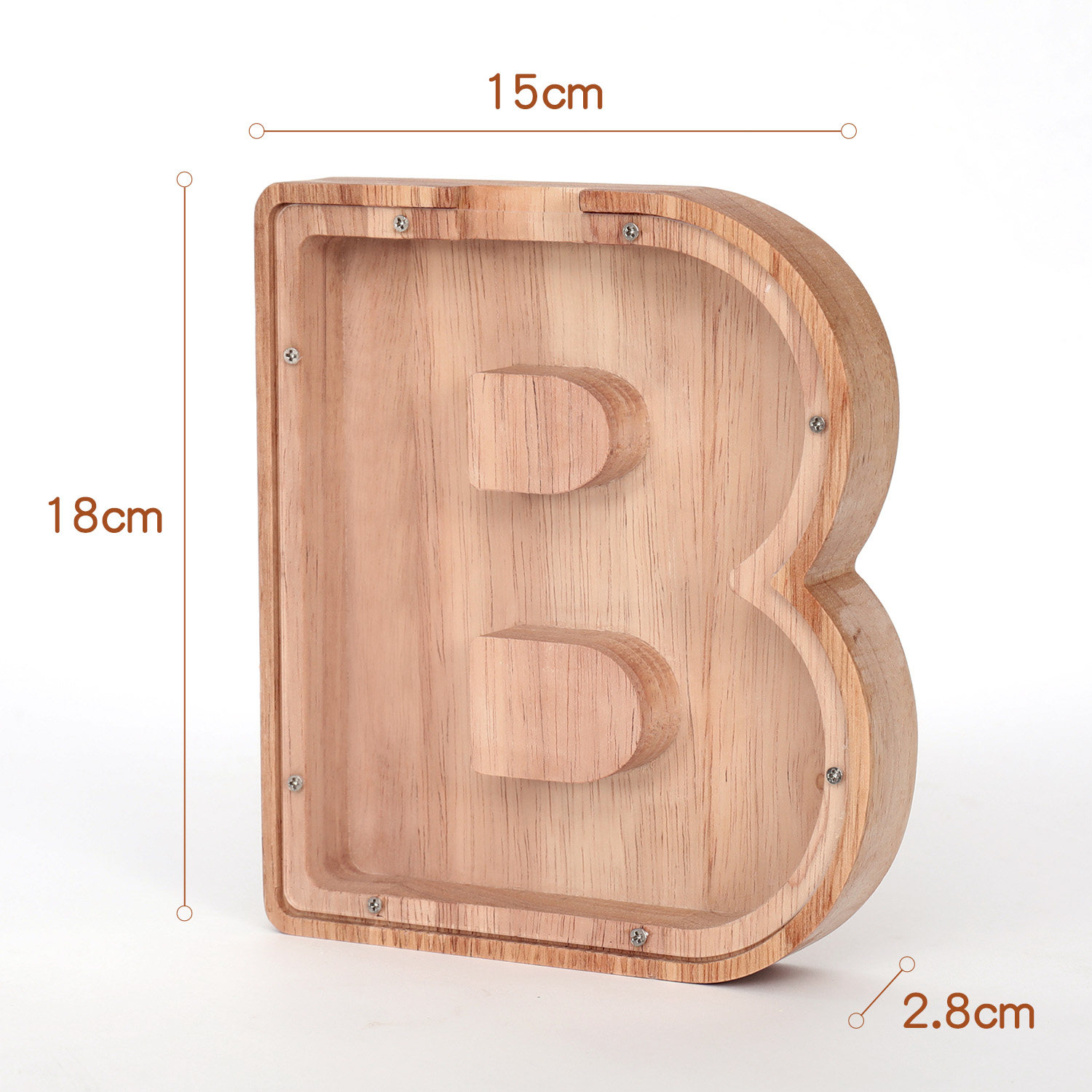 网红木制英文字母存钱罐钱箱储蓄罐储钱罐摆件卡通透明礼品压岁钱