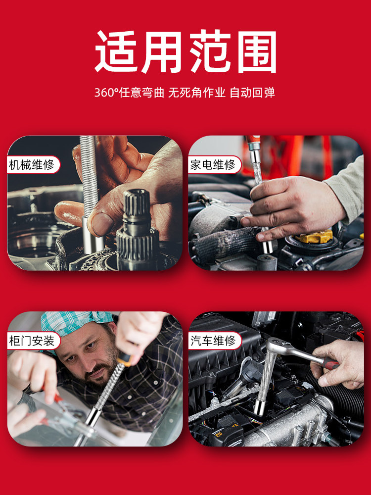 推荐理由:万向套筒加长连接杆丨弹簧软轴丨360无死角
