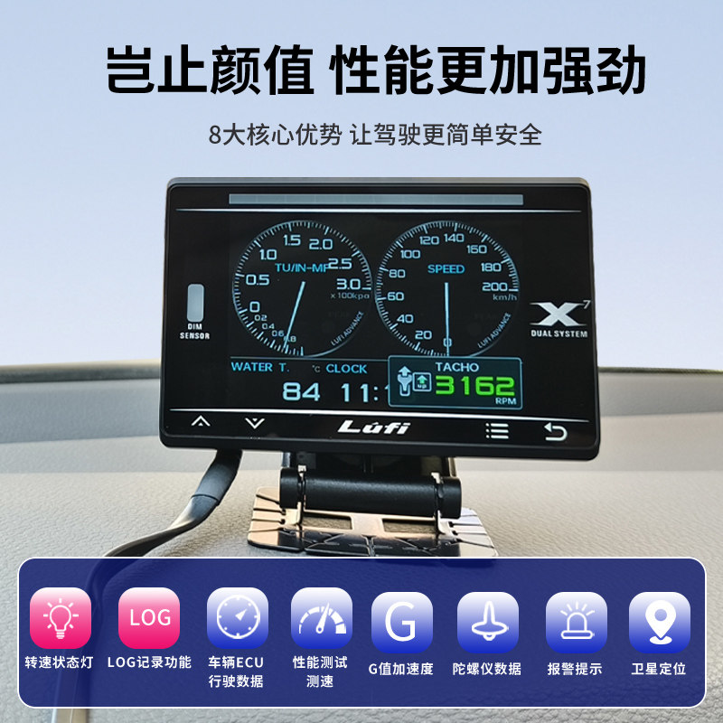 推荐理由:新款四代LUFI X7汽车多功能OBD仪表水温排温涡轮转速液晶表跑马灯
