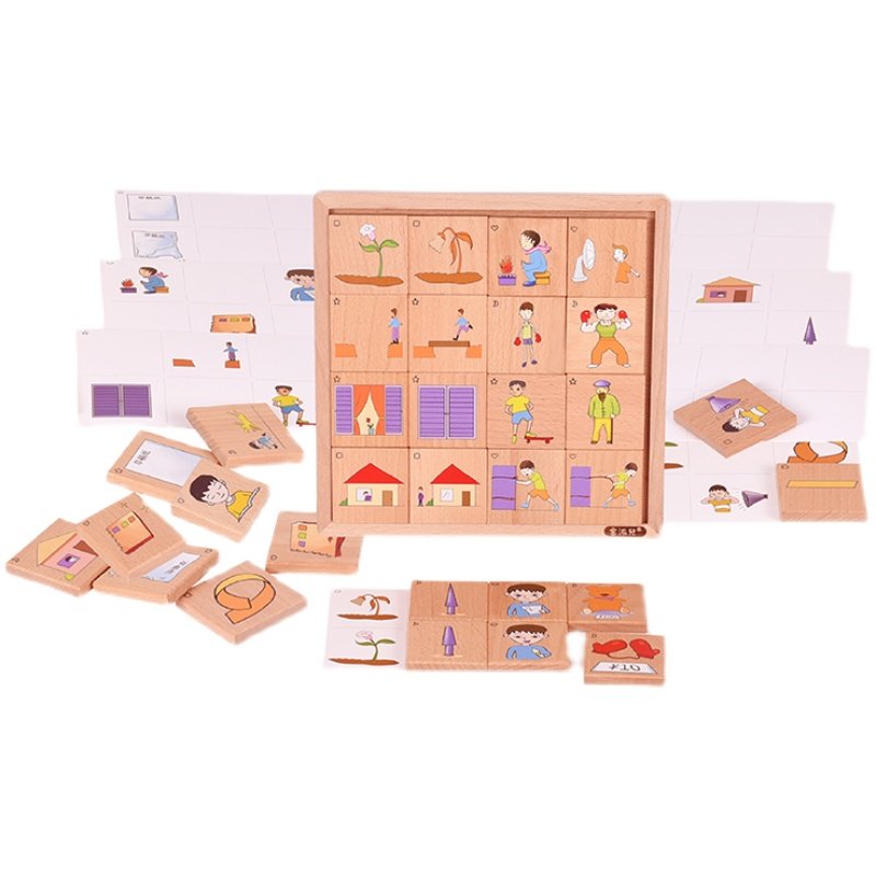 德美意芬儿童拼图卡片配对逻辑思维训练益智力找相反游戏木质玩具