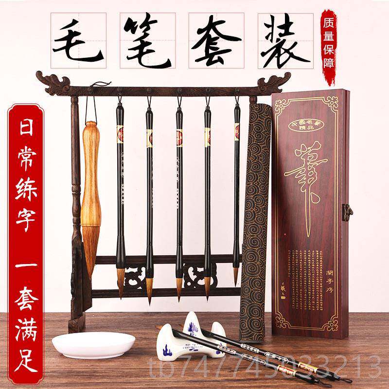 新款初学书法套装狼边毫毛笔17件套学笔生初学毛笔字大笔挂字笔架