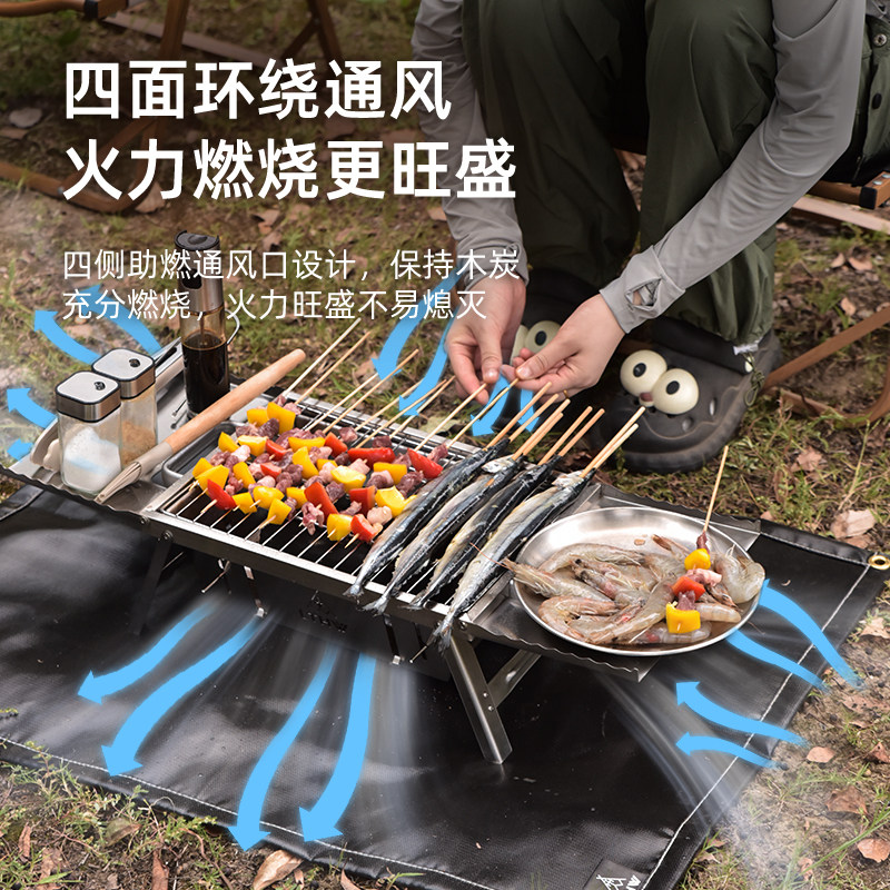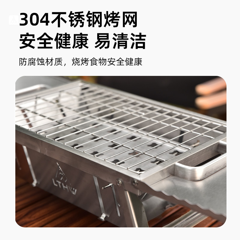 LTHW旅腾烧烤炉户外不锈钢木炭烤肉烤串折叠炉露营野餐便携焚火架