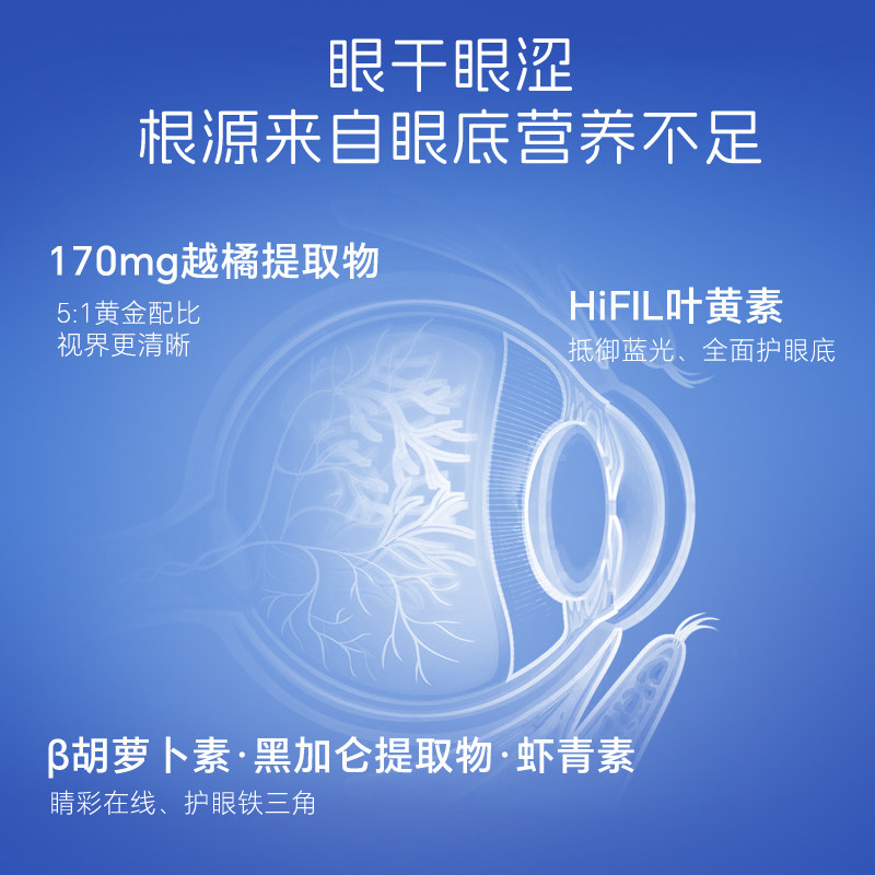 推荐理由:【晁然直播间】日本进口越橘花青素叶黄素儿童成人护眼胶囊3瓶装