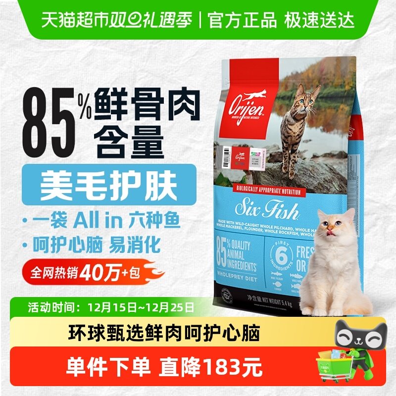 Orijen渴望无谷成猫幼猫六种鱼全价鱼肉猫粮5.4kg进口通用高蛋白