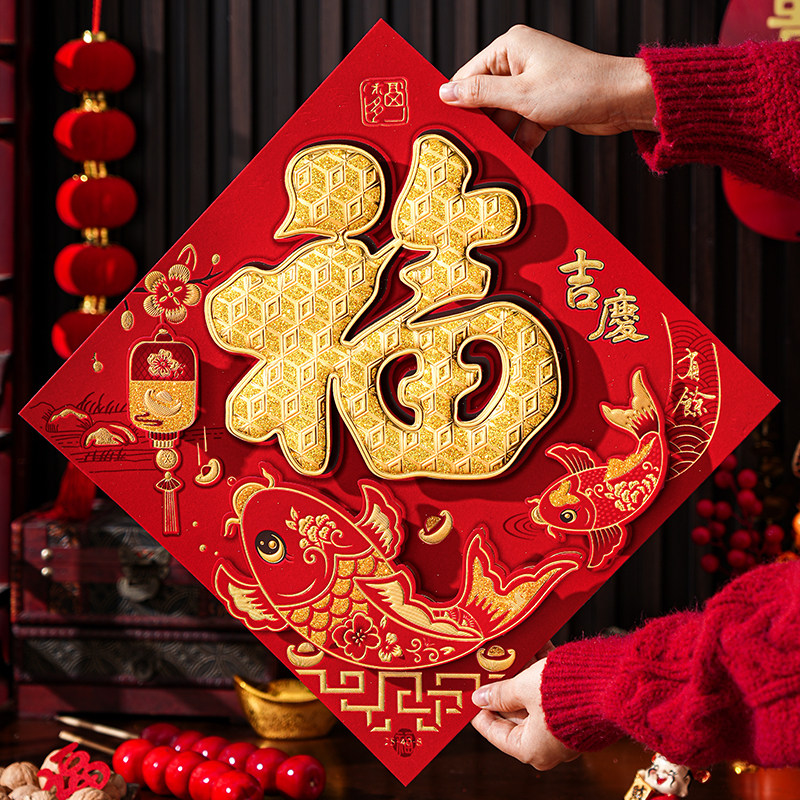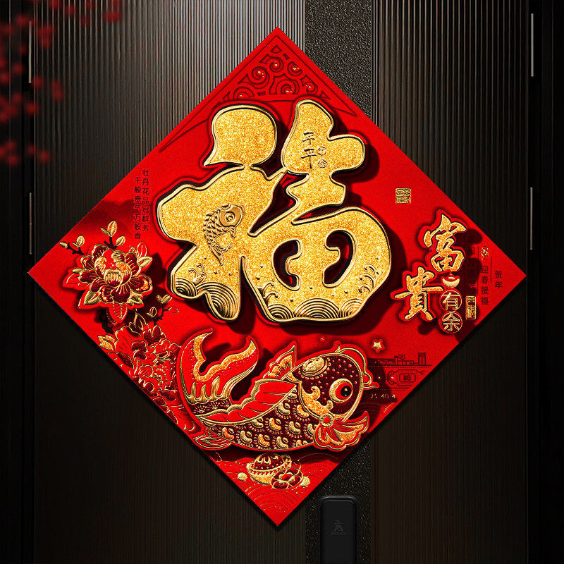 2026马年福字门贴新年过年装饰立体烫金门幅春节卧室大门贴纸新款