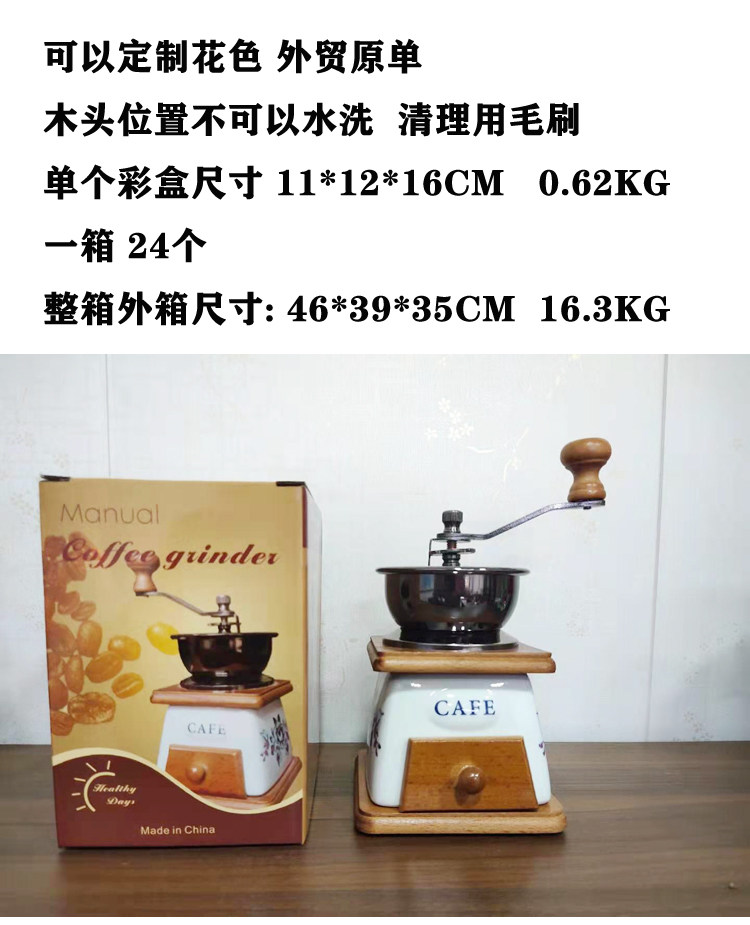 推荐理由:陶瓷芯磨豆机外贸热销研磨机木磨粉机手摇咖啡机磨咖啡粉手动手冲