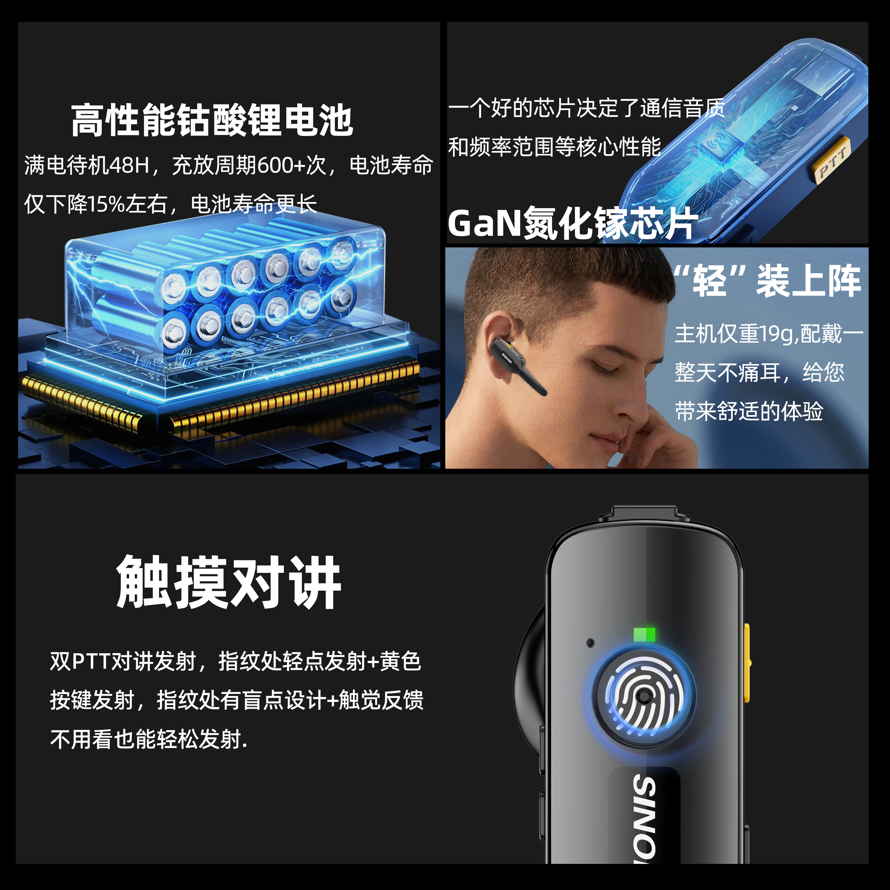 触摸耳挂式对讲机主动降噪迷你小型无线电对讲器美容美发酒饭店用