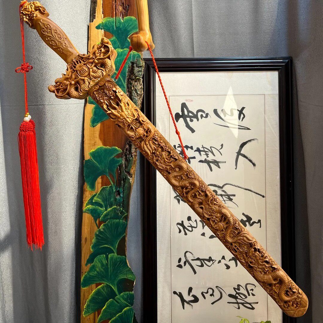 桃木剑木雕摆件儿童随身挂件高端桃木朱砂宝剑客厅小孩婴儿道士剑