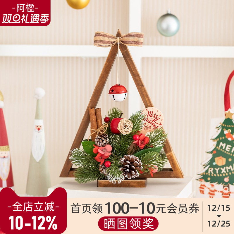 阿楹 氛围花圣诞节摆件树 灯装饰松果拍摄道具户外平安夜场景布置