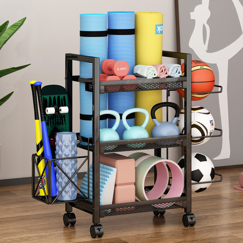 运动器材收纳架大容量健身哑铃整理架可移动家用球架瑜伽垫收纳筐
