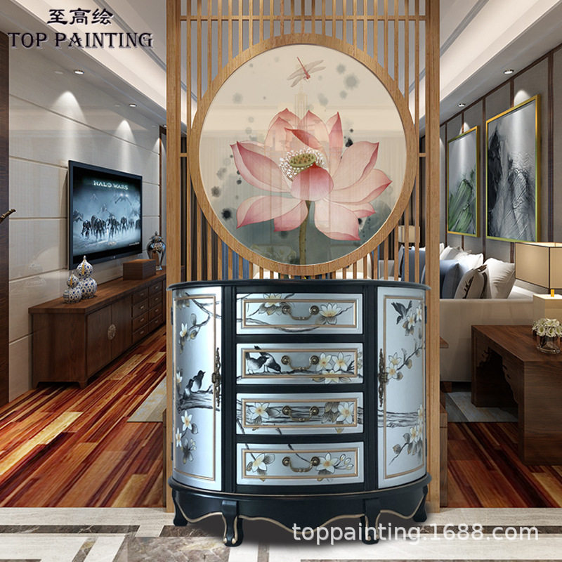 至高工厂批发新中式玄关柜半圆实木彩绘古典进门装饰柜隔断柜
