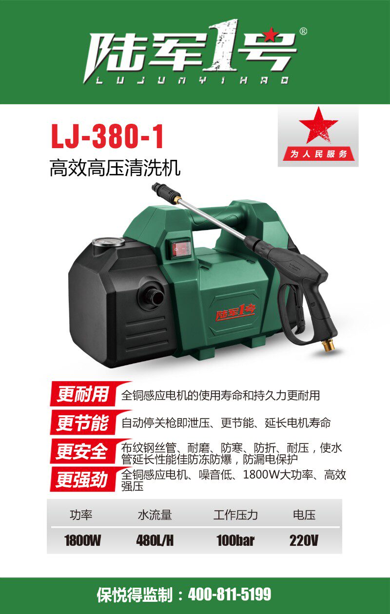 陆军一号1号高压清洗机LJ380A洗车D机380-1高压管枪头便携式配件