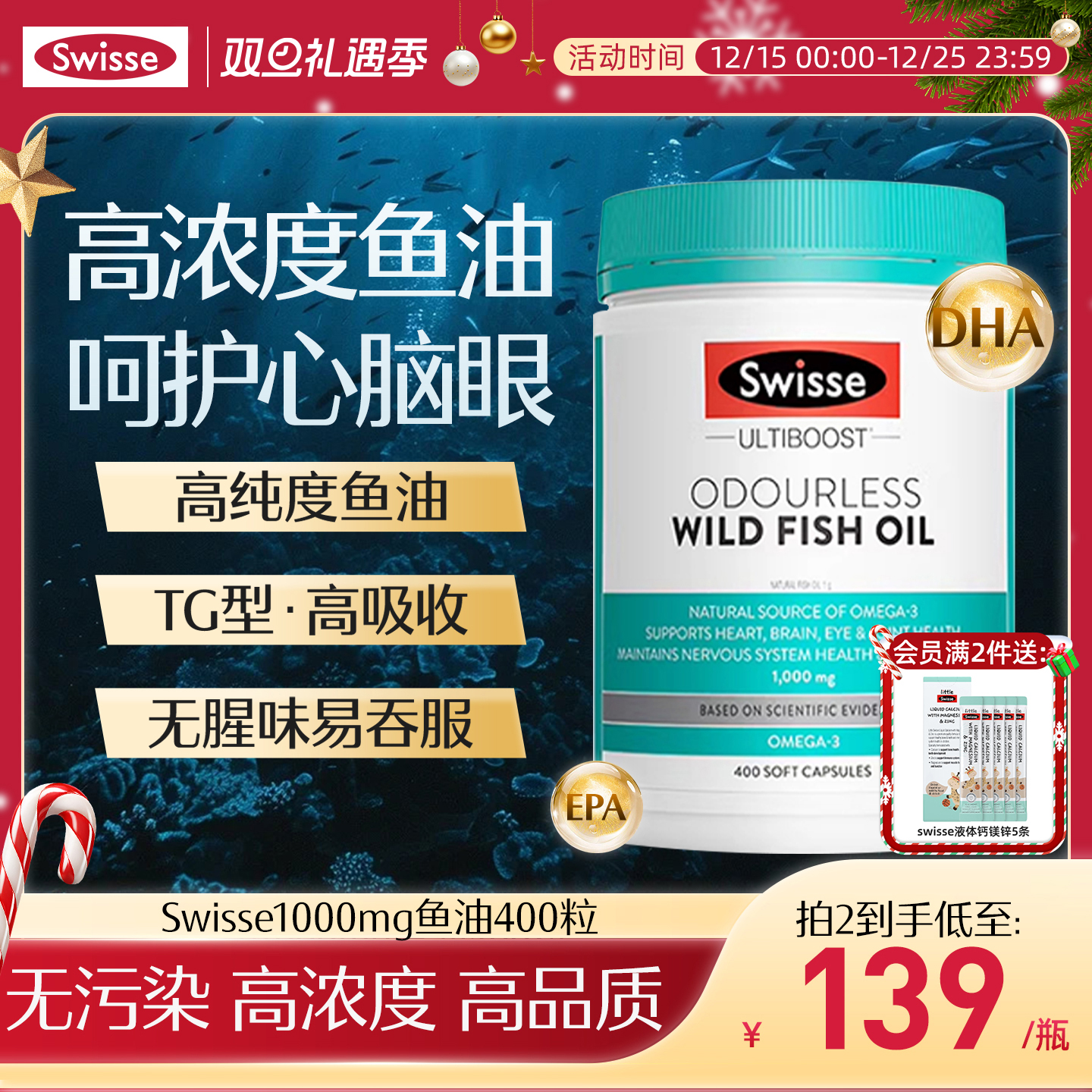 Swisse官方深海鱼油omega3斯维诗成人鱼肝油高浓度护心眼脑软胶囊