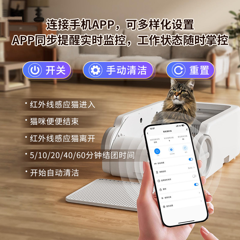 萌头头全自动开放式猫砂盆超大号智能清理电动铲屎除臭猫厕所