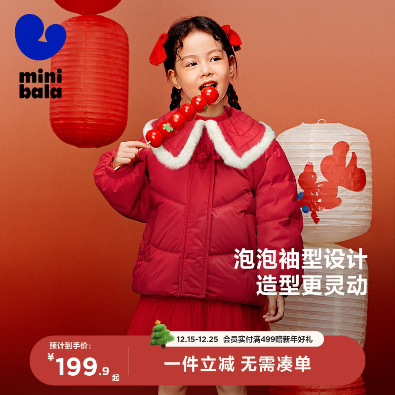 【新中式】迷你巴拉巴拉女童国风羽绒服冬季新款宝宝红色羽绒外套