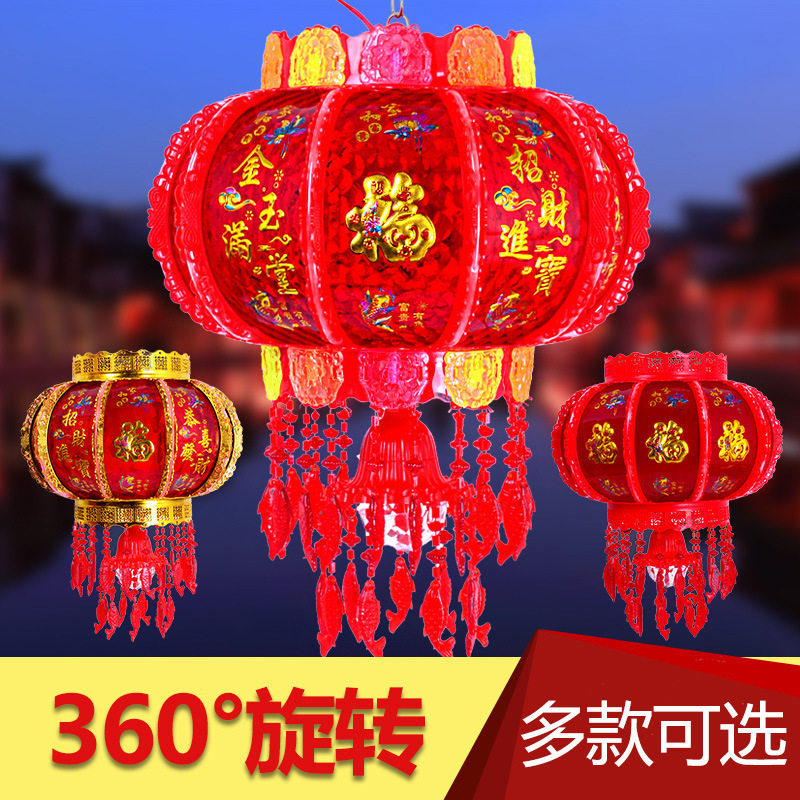 春节走马灯笼电动旋转led吊灯大红灯笼过年电动自转发光七彩水晶