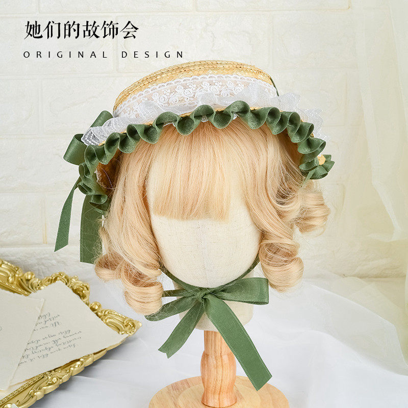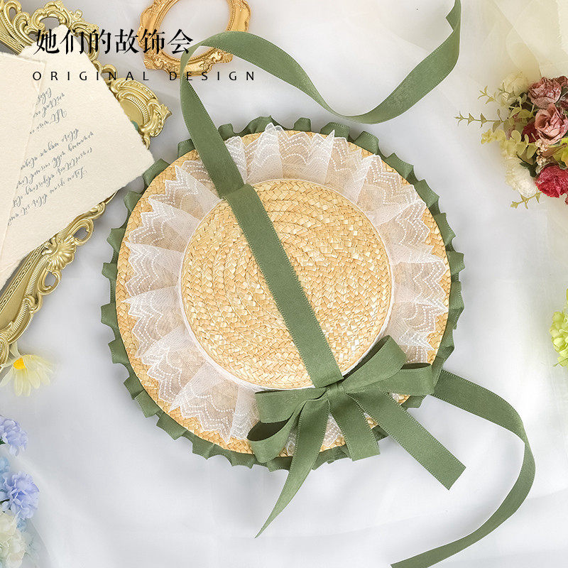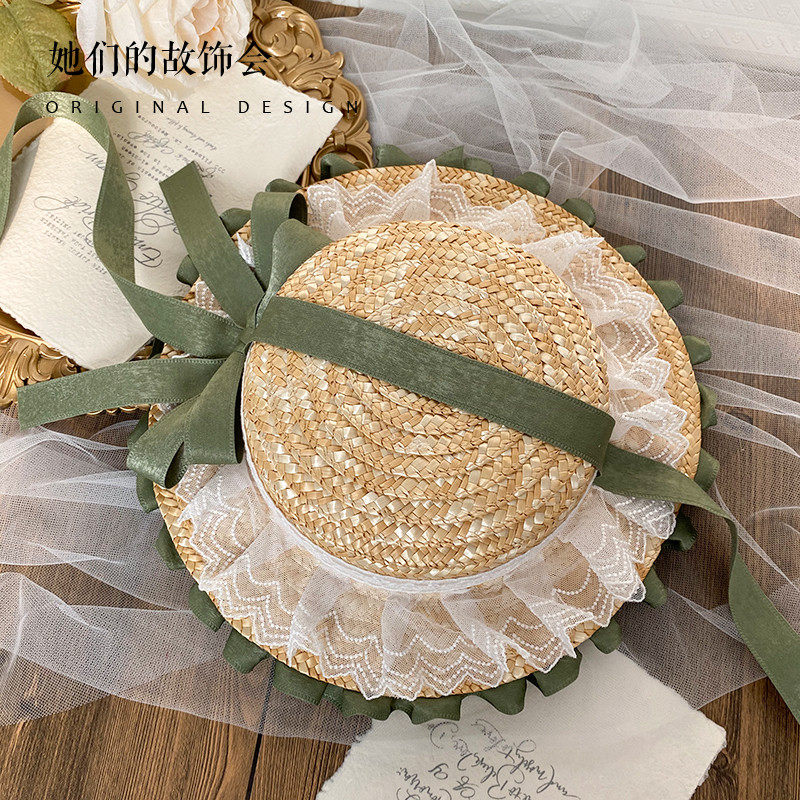 lolita草帽女夏天洛丽塔扁帽手作配饰小物蝴蝶结帽子新款2022春款