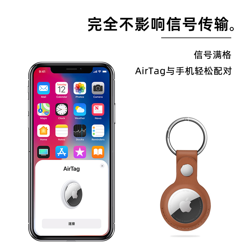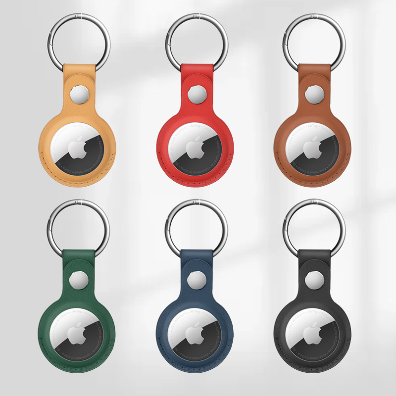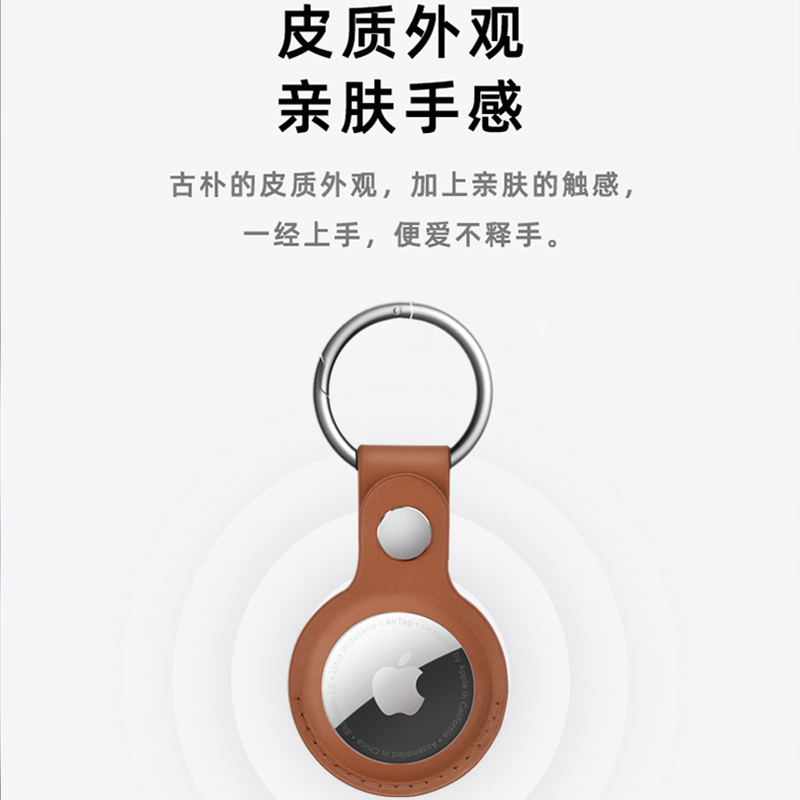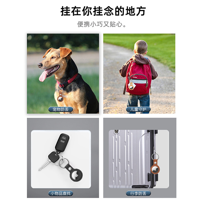 适用新款AirTag保护套苹果皮质保护壳防丢器防摔钥匙扣环宠物项圈