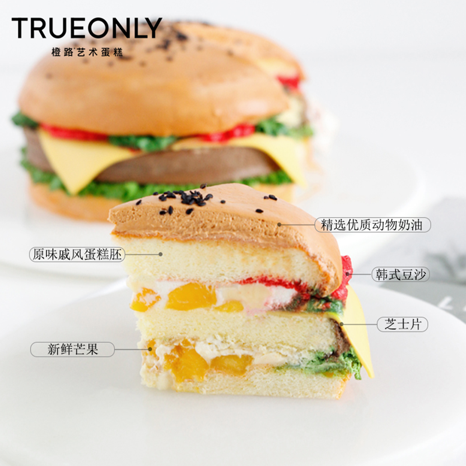 橙路创意汉堡动物奶油生日蛋糕深圳北京上海广州杭州宁波同城配送
