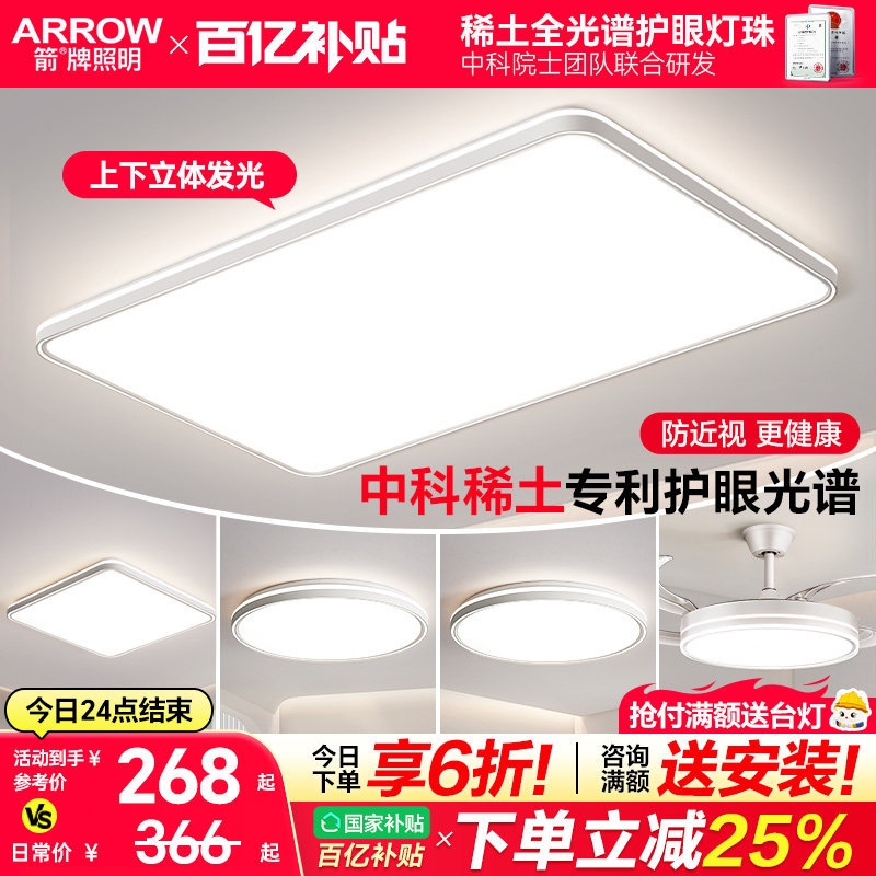 箭牌眼卫士客厅主灯2025新款护眼吸顶灯现代简约大气灯具全屋套餐