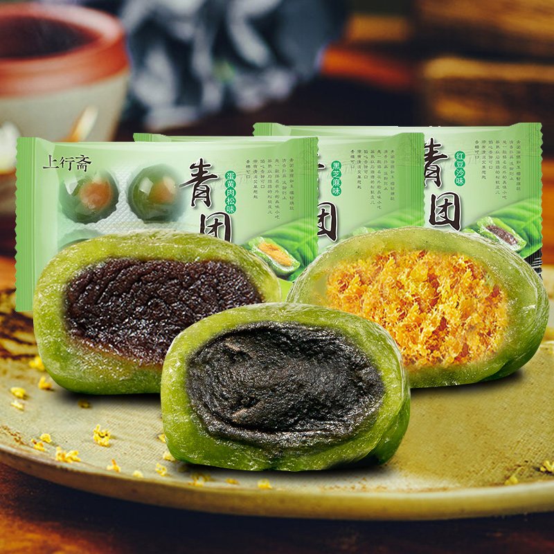 上行斋青团艾草糕点豆沙蛋黄肉松上海特产青团子网红小吃清明果