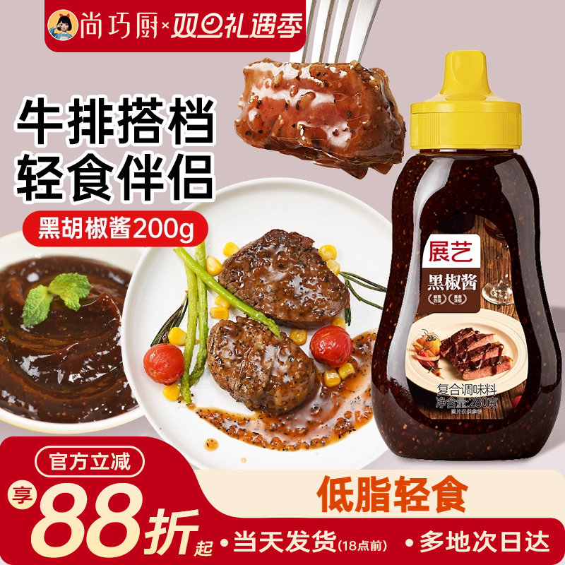 尚巧厨展艺黑胡椒酱低减低脂黑椒酱牛排烤肉汁商用意大利面拌面酱