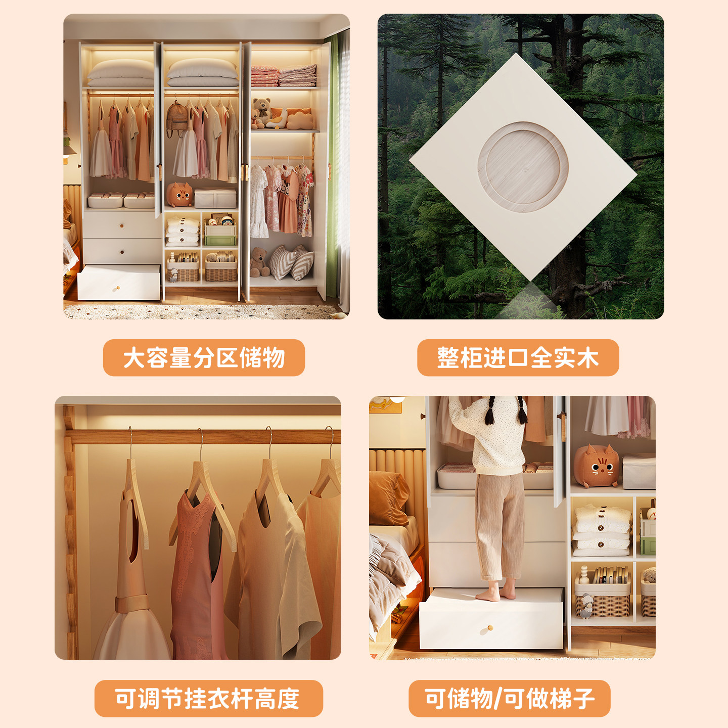 推荐理由:国补橡木全实木宝宝衣柜儿童家用卧室小衣橱女孩男孩无甲醛收纳柜