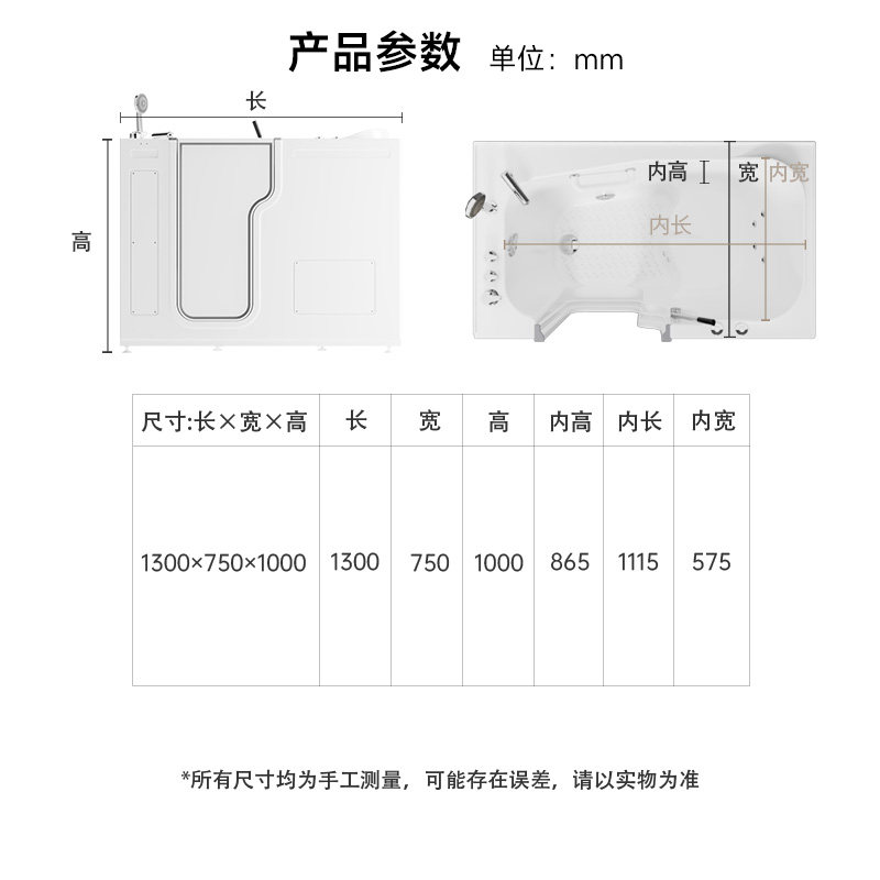 推荐理由:浪鲸家用浴缸小户型亚克力按摩老人浴缸独立步入深泡缸定制040