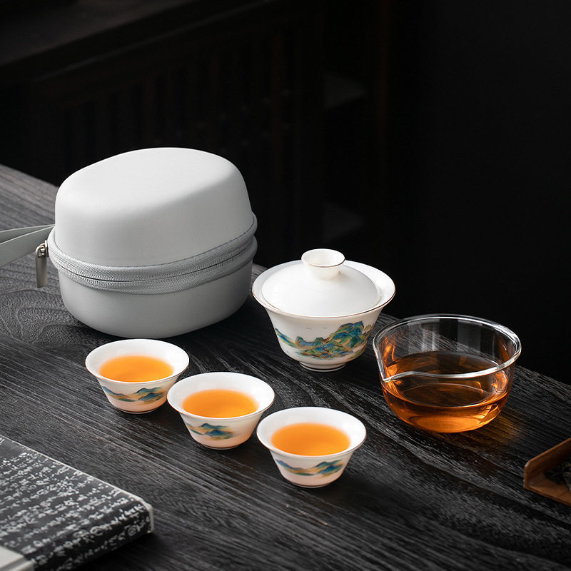 便携式旅行茶具小套装简易户外功夫泡茶壶茶杯个人专用露营快客杯