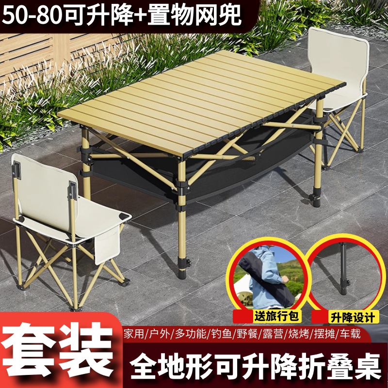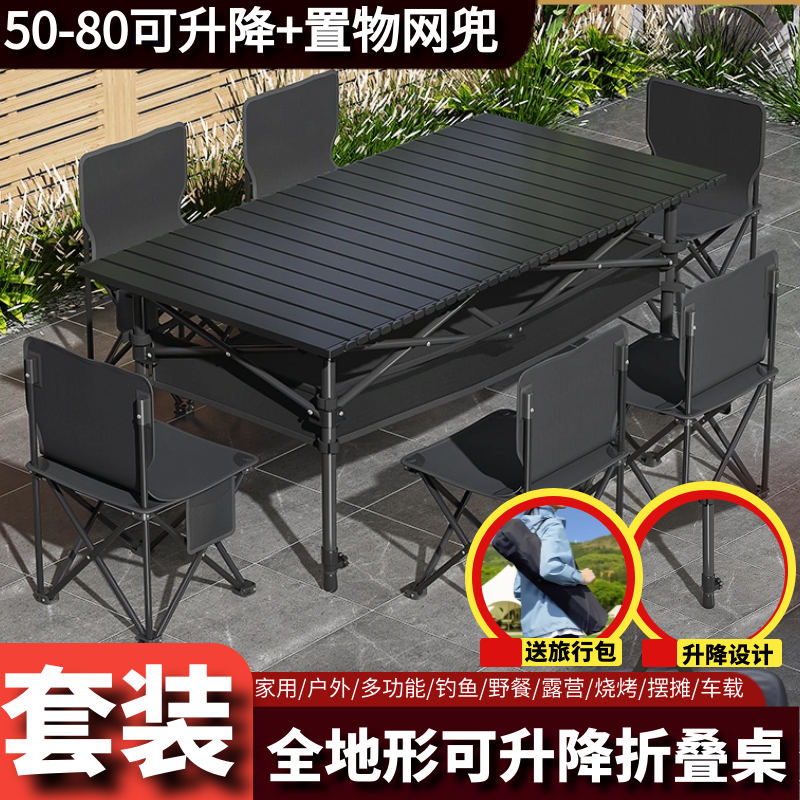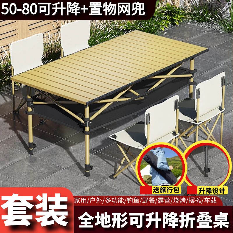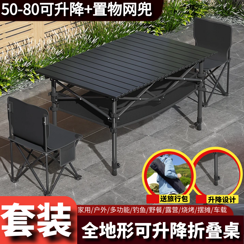 推荐理由:户外折叠桌便携式可升降蛋卷桌露营野炊摆地摊烧烤等装备桌椅套装
