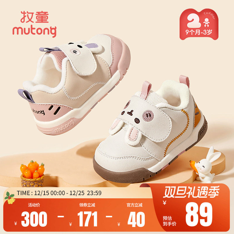 牧童童鞋步前鞋女宝宝冬季新款小兔软底学步婴儿鞋加绒保暖面包鞋