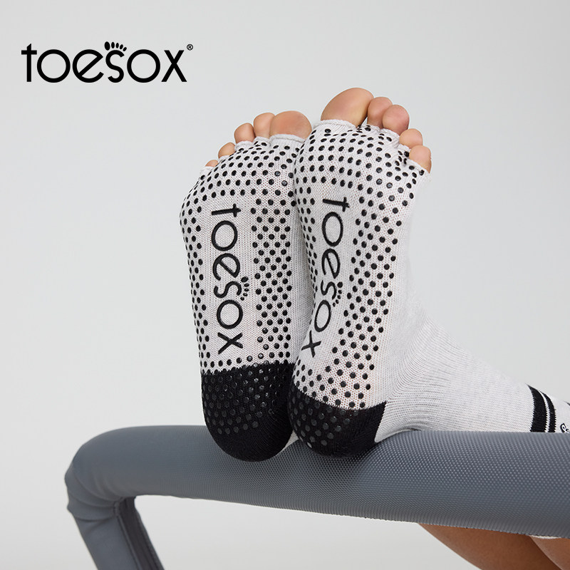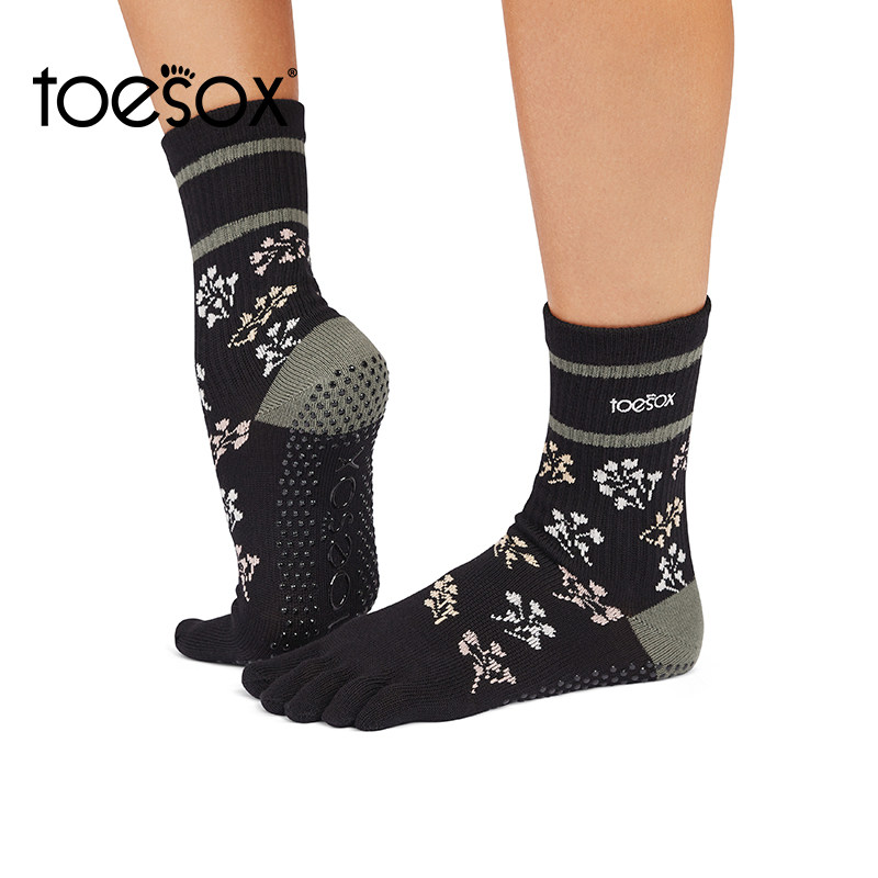 toesox瑜伽袜中帮防滑袜普拉提舞蹈防滑颗粒五指袜健身运动袜Crew