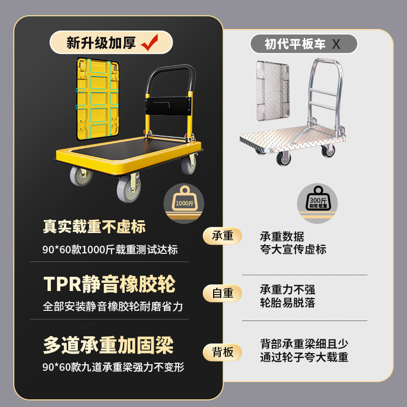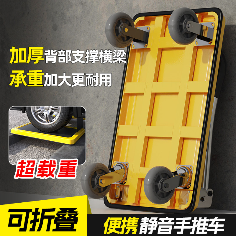 小推车拉货四轮手推车搬运车可折叠便携平板拖车家用静音围栏拉车