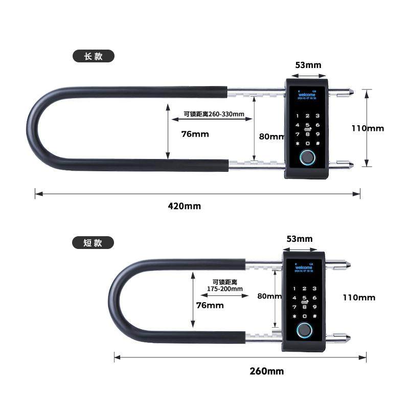 密码锁u型锁玻璃门指纹锁双开门商铺店面U形插锁电子挂锁智能门锁