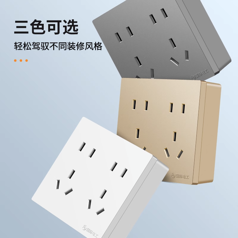 推荐理由:86型明装六孔错位插座10A16A三三插空调热水器86型双三孔开关面板